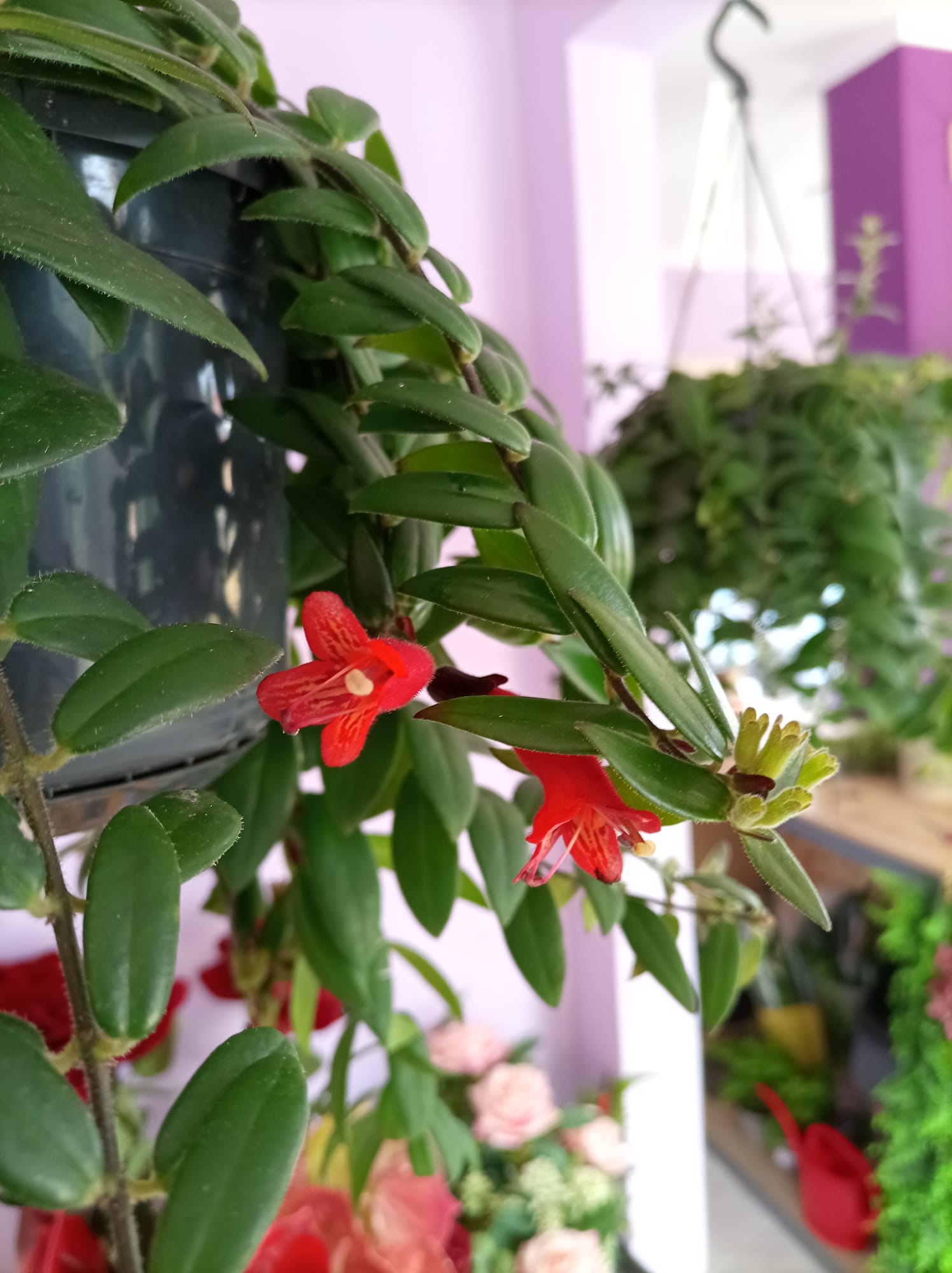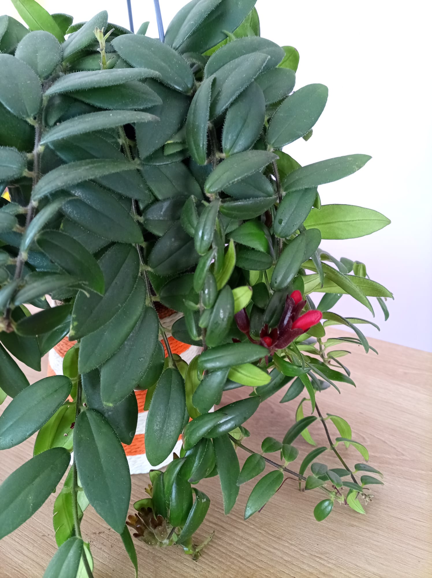 O Aeschynanthus, também conhecido como “planta-batom”, é uma planta tropical pendente muito apreciada pelas suas flores vibrantes e exóticas 🌺